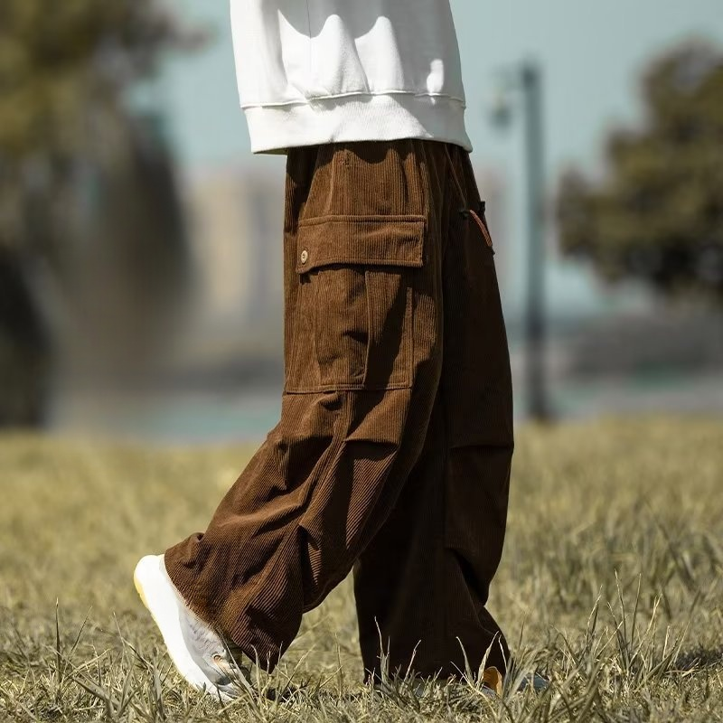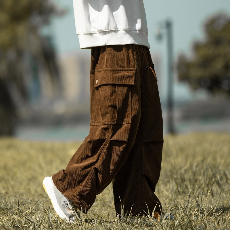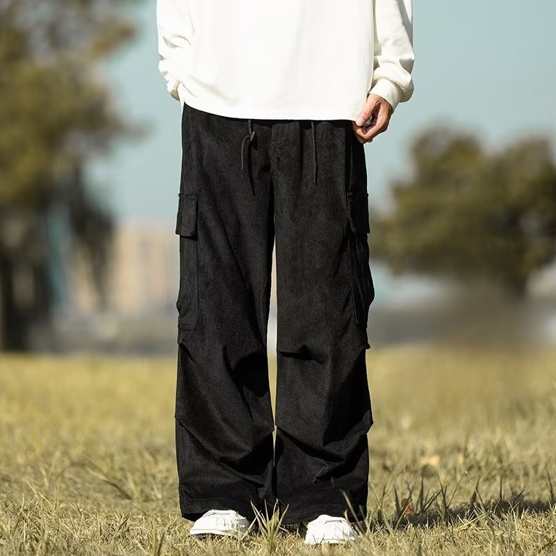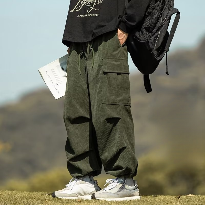 カップル秋冬コーデュロイストレートワイドパンツ メンズ アーミーグリーン